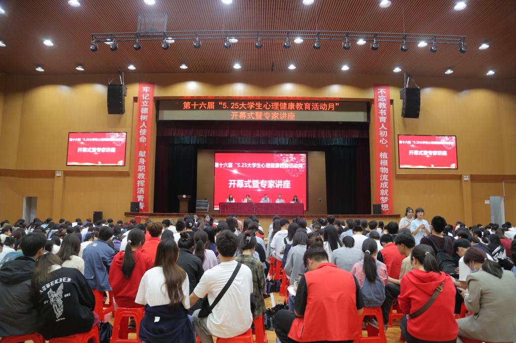 4月18日下午两点,我校第十六届“5.25大学生心理健康教育活动月”开幕式暨专家讲座在体育艺术馆隆重举行。活动由该院学生工作处处长赵建军主持,物流管理学院党总支书记卜志纯,物流信息学院党总支书记廖向阳和学生工作处副处长、心理中心主任唐志红出席,全体专兼职心理教师、学生干事、专兼职辅导员等50余名教师、各学院1100名学生代表及长沙电力职院、湖南机电职院近100余名学生代表参加活动。