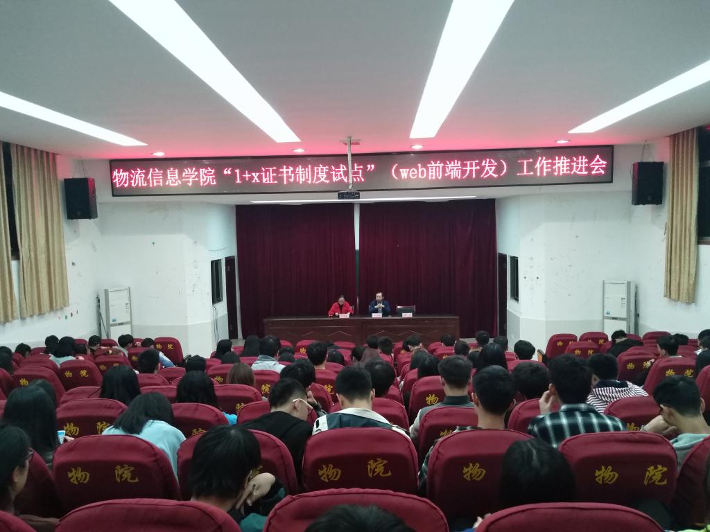 物流信息学院“1+X证书制度试点”(web前端开发)工作推进会于2019年11月14日晚上19:00在学术报告厅举行,物信学院院长米志强、计应教研室主任刘香丽、移动应用开发专业带头人杨勇、专职辅导员贺利平,余锦秀,以及17级、18级计算机专业班级学生代表参与本次推进会,会议由米志强主持。